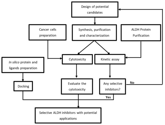 - Morgan, C.A.; Hurley, T. Characterization of two distinct structural classes of selective aldehyde dehydrogenase 1A1 inhibitors. J. Med. Chem. 2015, 58, 1964–1975. [Google Scholar] [CrossRef] [PubMed]