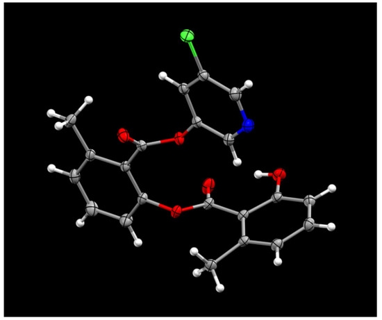 - 5-chloropyridin-3-yl 2-hydroxy-5-methylbenzoate (15a) and 5-chloropyridin-3-yl 2-((2-hydroxy-5-methylbenzoyl)oxy)-5-methylbenzoate (15b) and 6-chloropyridin-2-yl 2-((2-((2-hydroxy-5-methylbenzoyl)oxy)-5-methylbenzoyl)oxy)-5-methylbenzoate (15c). Commercially available 2-hydroxy-5-methylbenzoic acid (200 mg, 1.31 mmol) was esterified with 5-chloropyridin-3-ol (204.3 mg, 1.58 mmol) by following the procedure for ester 6a to provide the title monoester 15a (72 mg, 21%), diester 15b (29 mg, 5%), and triester 15c (11 mg, 5%) as amorphous solid.