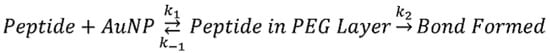 Kinetic scheme for peptide interaction with PEGylated AuNPs.