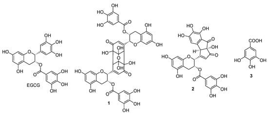 - Tanaka, T.; Matsuo, Y.; Kouno, I. A novel black tea pigment and two new oxidation products of epigallocatechin-3-O-gallate. J. Agric. Food Chem. 2005, 53, 7571–7578. [Google Scholar] [CrossRef]