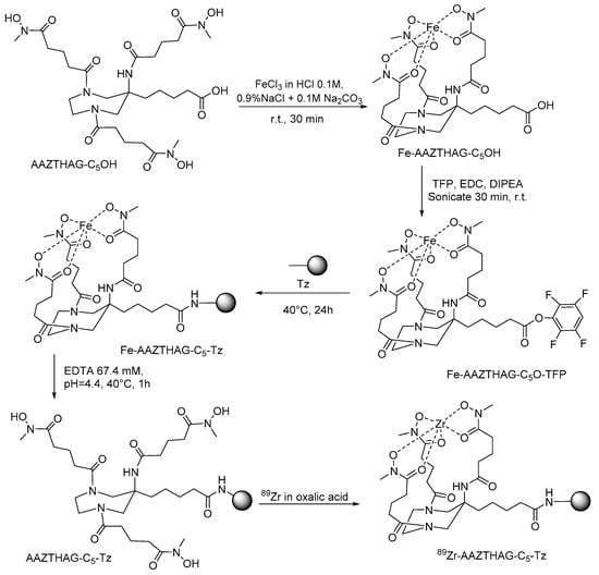 Synthesis scheme of 89Zr-AAZTHAG-C5-Tz.