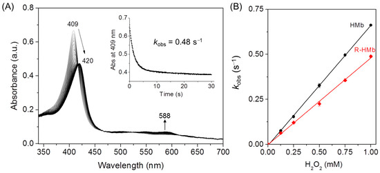 - Witting, P.K.; Mauk, A.G.; Lay, P. Role of Tyrosine-103 in Myoglobin Peroxidase Activity: Kinetic and Steady-State Studies on the Reaction of Wild-Type and Variant Recombinant Human Myoglobins with H2O2. Biochemestry 2002, 41, 11495–11503. [Google Scholar] [CrossRef]