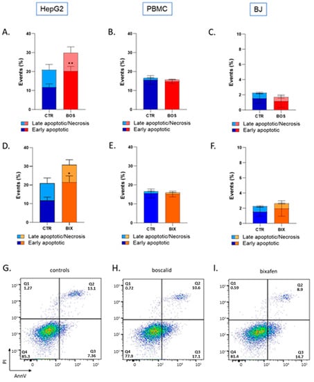 2.3. Bixafen and Boscalid Induced Apoptosis in HepG2 Cells, but Not in PBMC and BJ Cells