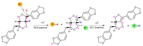 - Papadopoulos, A.G.; Nenadis, N.; Sigalas, M.P. DFT Study of Radical Scavenging Activity of Sesame Oil Lignans and Selected in vivo Metabolites of Sesamin. Comput. Theor. Chem. 2016, 1077, 125–132. [Google Scholar] [CrossRef]