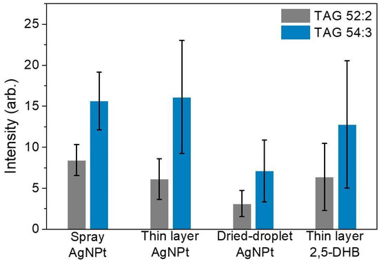 - Silina, Y.E.; Fink-Straube, C.; Hayen, H.; Volmer, D.A. Analysis of Fatty Acids and Triacylglycerides by Pd Nanoparticle-Assisted Laser Desorption/Ionization Mass Spectrometry. Anal. Methods 2015, 7, 3701–3707. [Google Scholar] [CrossRef] [Green Version]