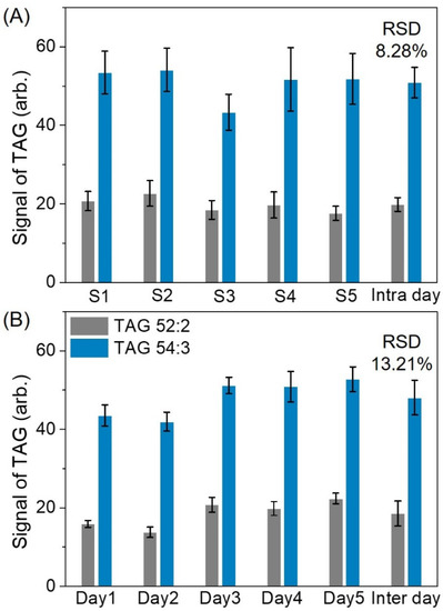 - Kuo, T.-H.; Kuei, M.-S.; Hsiao, Y.; Chung, H.-H.; Hsu, C.-C.; Chen, H.-J. Matrix-Assisted Laser Desorption/Ionization Mass Spectrometry Typings of Edible Oils through Spectral Networking of Triacylglycerol Fingerprints. ACS Omega 2019, 4, 15734–15741. [Google Scholar] [CrossRef] [PubMed] [Green Version]
