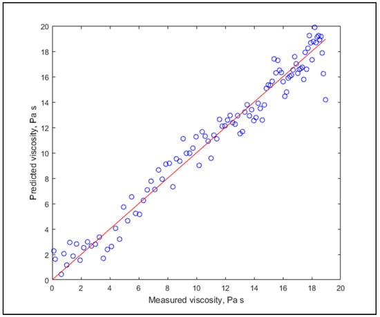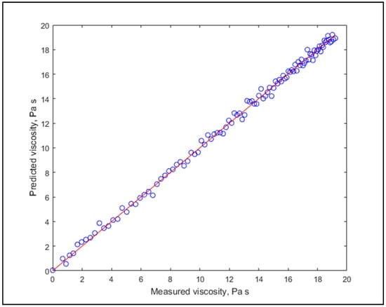 Example for measured and estimated viscosity (R2adj = 0.9973).