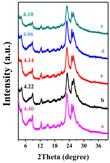 | Name | Chemical Composition | Surface Area (m2/g) | Micro Volume (cm3/g) | 2θ degree 1 | d Spacing 2 (Å2) | Reference |