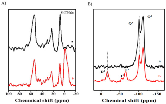 3.4. Investigation of Interlayer Expansion by 13C and 29Si NMR Spectroscopy