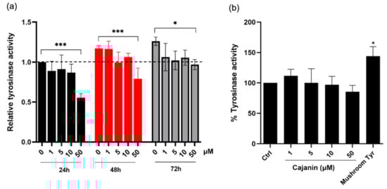 2.3. Cellular Tyrosinase Activity Suppressed by Cajanin