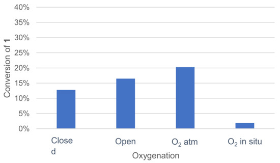 Various oxygenation methods were tested: closed vessel, open vessel at ambient atmosphere, vessel under an oxygen atmosphere and oxygenation by controlled in situ catalase degradation of hydrogen peroxide (Figure 5). Once again, the effect was quickly assessed by monitoring the remaining 1 in the crude reaction mixture after extraction and GC/MS analysis.