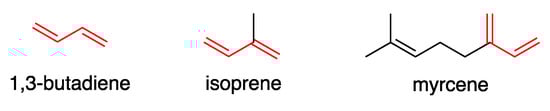 1,3-Dienes are also important industrially. Buta-1,3-diene, produced from steam crackers on a scale of more than 10 million tons per year worldwide, is a monomer in the production of synthetic rubber. [] Other 1,3-dienes, such as isoprene and myrcene, are also produced on a multi-ton scale and used for their conversion of into more complex and useful molecules, mainly in the polymer industry [] (Figure 2).