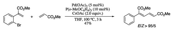 It is quite surprising that, until Madden’s research, vinyliodides had been almost completely overlooked in such couplings, except for one report from Heck et al. in 1975 [].