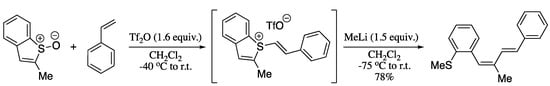 - Šiauciulis, M.; Ahlsten, N.; Pulis, A.P.; Procter, D.J. Transition-metal-free cross-coupling of benzothiophenes and styrenes in a stereoselective synthesis of substituted (E,Z)-1,3-dienes. Angew. Chem. Int. Ed. 2019, 58, 8779–8783. [Google Scholar] [CrossRef]