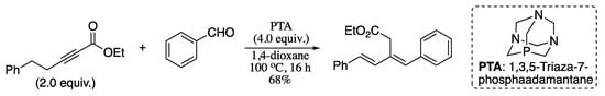 - Jacobsen, M.J.; Funder, E.D.; Cramer, J.R.; Gothelf, K.V. β-Olefination of 2-alkynoates leading to trisubstituted 1,3-dienes. Org. Lett. 2011, 13, 3418–3421. [Google Scholar] [CrossRef] [PubMed]