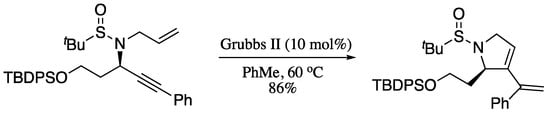 - García-Muñoz, M.J.; Sirvent, A.; Foubelo, F.; Yus, M. Synthesis of chiral 1,3-dienes through ring-closing metathesis of enantioenriched enynes: Potential precursors of morphane analogs. An. Acad. Bras. Ciênc. 2018, 90, 1059–1072. [Google Scholar] [CrossRef] [PubMed]