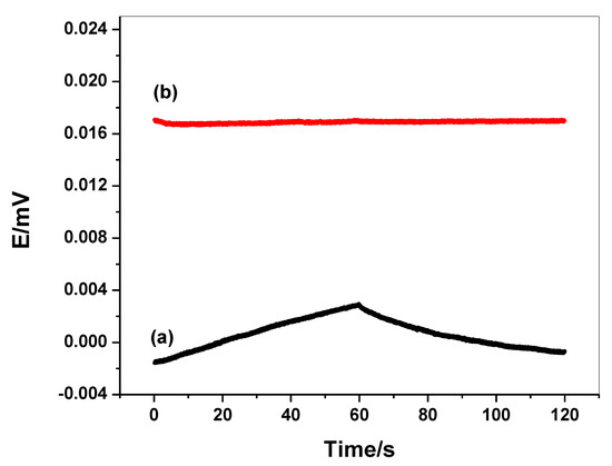 Chronopotentiogram for (a) C/harmine-ISE; and (b) C/PEDOT:PSS/harmine-ISE.