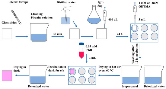 Schematic summary of preparation and coating of glass slide with hybrid film.