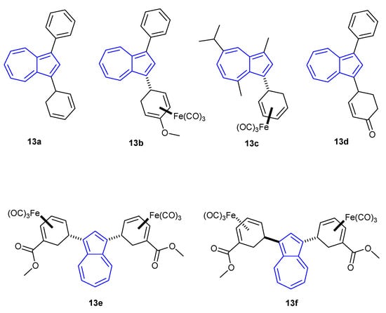 - Dunås, P.; Murfin, L.C.; Nilsson, O.J.; Jame, N.; Lewis, S.E.; Kann, N. Azulene functionalization by iron-mediated addition to a cyclohexadiene scaffold. J. Org. Chem. 2020, 85, 13453–13465. [Google Scholar] [CrossRef]