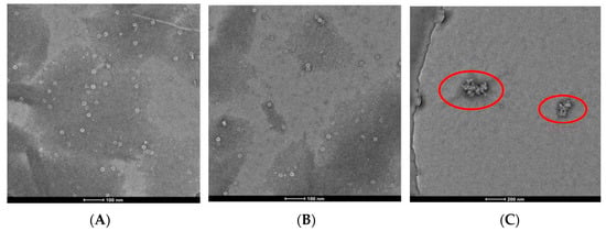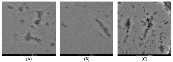 TMV rod assembly inhibition of compound 3 and NK0209: (A) 20S CP disk + RNA (500 nm scale bar), (B) 20S CP disk + RNA + 1/100 DMSO (500 nm scale bar), (C) 20S CP disk + RNA + 10 μM 3 (500 nm scale bar).
