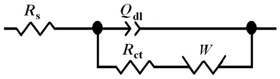 Equivalent electrical circuit employed to fit the electrochemical impedance spectroscopy (EIS) spectra.