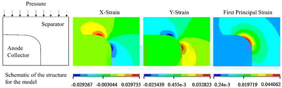 Schematic and contours of strain [m m−1] components in the separator near the corner [31].