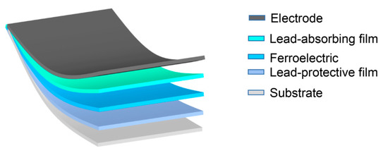 Imagination of Lead Sequestration Model Diagram. Composition structure (Electrode/Lead-absorbing film/Ferroelectric/Lead-protective film/Substrate).