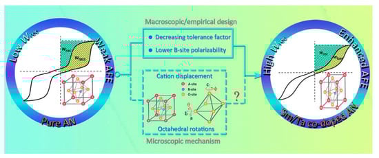 - Zhao, L.; Gao, J.; Liu, Q.; Zhang, S.; Li, J.F. Silver Niobate Lead-Free Antiferroelectric Ceramics: Enhancing Energy Storage Density by B-Site Doping. ACS Appl. Mater. Interfaces 2018, 10, 819–826. [Google Scholar] [CrossRef] [PubMed]