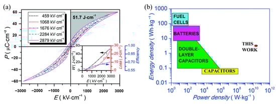 - Pan, H.; Li, F.; Liu, Y.; Zhang, Q.; Wang, M.; Lan, S.; Zheng, Y.; Ma, J.; Gu, L.; Shen, Y. Ultrahigh–energy density lead-free dielectric films via polymorphic nanodomain design. Science 2019, 365, 578–582. [Google Scholar] [CrossRef]