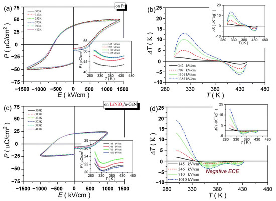 - Peng, B.; Jiang, J.; Tang, S.; Zhang, M.; Liu, L.; Zou, B.; Leighton, G.J.T.; Shaw, C.P.; Luo, N.; Zhang, Q. Tailoring the electrocaloric effect of Pb0.78Ba0.2La0.02ZrO3 relaxor thin film by GaN substrates. J. Mater. Chem. C 2019, 7, 14109–14115. [Google Scholar] [CrossRef]