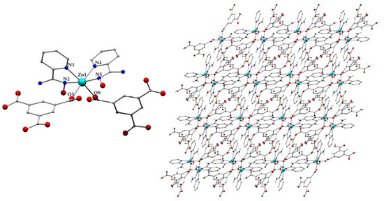 3.2.2. Synthesis of [Zn(Hbtc)(H2pyaox)2]n (2)
