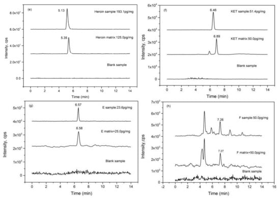 4.4. Simultaneous Analysis of the Eight Analytes in Hair