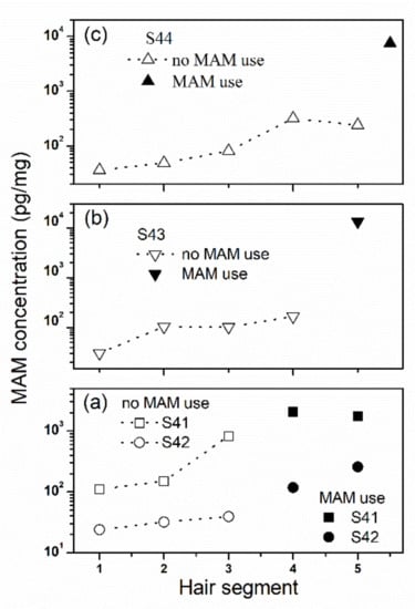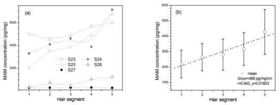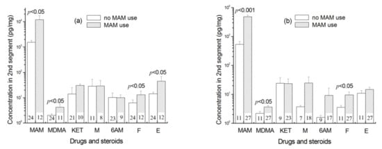 2.7. The Effect of MAM Use on Concentrations of Steroids in Hair