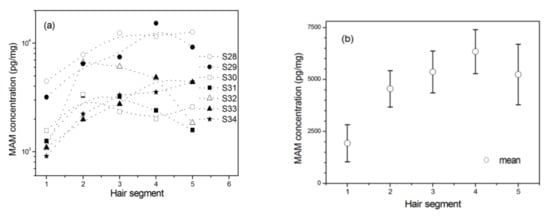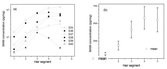 - Pragst, F.; Balikova, M.A. State of the art in hair analysis for detection of drug and alcohol abuse. Clin. Chim. Acta 2006, 370, 17–49. [Google Scholar] [CrossRef] [PubMed]