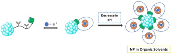 Figure 5. Schematic representation of phase transfer via pH modification [3]. In the figure, the abbreviation “NP” means nanoparticle.