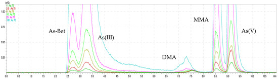 The overlapped chromatograms of As species for HPLC–ICP–MS.