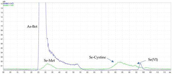 In the present study, in the onion samples, both inorganic and organic forms were obtained. Wróbel et al. (2004) found that the extracts obtained from leaves grown in the presence of Se(IV) and Se(VI) obtained Se(VI), Se-cystine, Se-methionine, and Se-methylselenocysteine forms, while in the hot water extract from onion bulbs, similar to the findings in this study, Se-methionine and additional Se-methylselenocysteine were also observed [48].