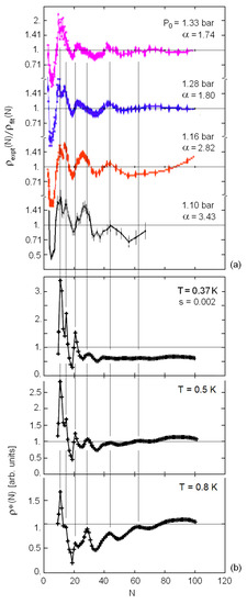 - Guardiola, R.; Kornilov, O.; Navarro, J.; Toennies, J.P. Magic numbers, excitation levels, and other properties of small neutral 4He clusters (N ≤ 50). J. Chem. Phys. 2006, 124, 084307–084316. [Google Scholar] [CrossRef] [PubMed] [Green Version]
