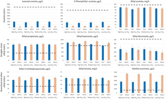 - Sumby, K.M.; Grbin, P.R.; Jiranek, V. Microbial Modulation of Aromatic Esters in Wine: Current Knowledge and Future Prospects. Food Chem. 2010, 121, 1–16. [Google Scholar] [CrossRef]
