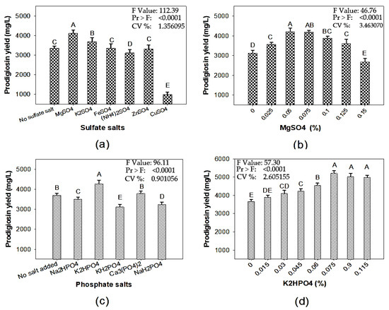 2.2. The Effects of Supplementary Salts in Culture Medium on PG Production