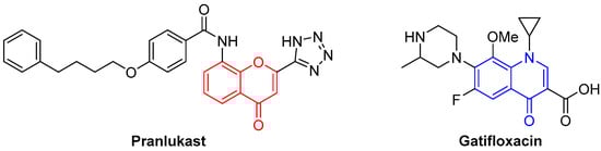 Examples of chromone- and quinolone-containing drugs.