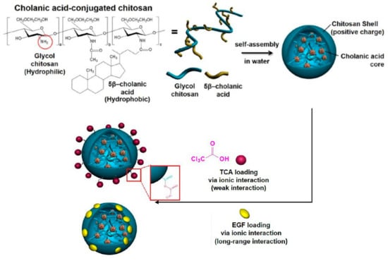 - Kwon, S.; Park, J.H.; Chung, H.; Kwon, I.C.; Jeong, S.Y.; Kim, I.-S. Physicochemical Characteristics of Self-Assembled Nanoparticles Based on Glycol Chitosan Bearing 5β-Cholanic Acid. Langmuir 2003, 19, 10188–10193. [Google Scholar] [CrossRef]