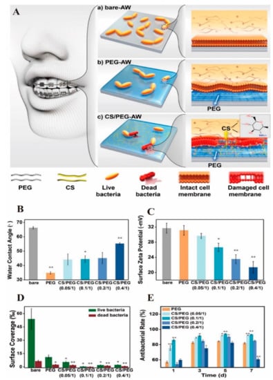 - Peng, L.; Chang, L.; Si, M.; Lin, J.; Wei, Y.; Wang, S.; Liu, H.; Han, B.; Jiang, L. Hydrogel-Coated Dental Device with Adhesion-Inhibiting and Colony-Suppressing Properties. ACS Appl. Mater. Interfaces 2020, 12, 9718–9725. [Google Scholar] [CrossRef]