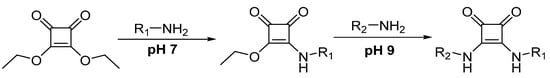 - Wurm, F.R.; Klok, H.A. Be squared: Expanding the horizon of squaric acid-mediated conjugations. Chem Soc. Rev. 2013, 42, 8220–8236. [Google Scholar] [CrossRef]