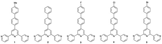 - Rocco, D.; Prescimone, A.; Constable, E.C.; Housecroft, C.E. Switching the conformation of 3,2′:6′,3″-tpy domains in 4′-(4-n-alkyloxyphenyl)-3,2′:6′,3″-terpyridines. Molecules 2020, 25, 3162. [Google Scholar] [CrossRef] [PubMed]