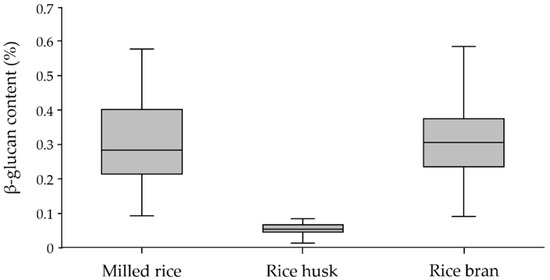Phuwadolpaisarn P. Comparison of β-Glucan Content in Milled Rice, Rice Husk and Rice Bran from Rice Cultivars Grown in Different Locations of Thailand and the Relationship between β-Glucan and Amylose Contents. Molecules. 2021; 26(21):6368. https://doi.org/10.3390/molecules26216368