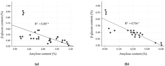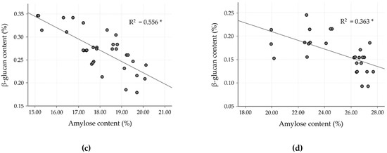 2.4. Relation of Amylose and β-Glucan Contents in Milled Rice Fraction