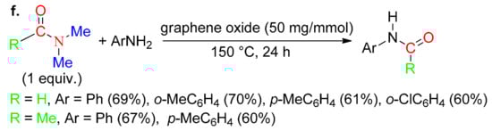 - Bhattacharya, S.; Ghoh, P.; Basu, B. Graphene oxide (GO) catalyzed transamidations of aliphatic amides: An efficient metal-free procedure. Tetrahedron Lett. 2018, 59, 899–903. [Google Scholar] [CrossRef]