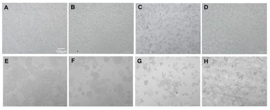 Morphological changes to HCT116 colorectal cancer cells (A–D) at 0, (A) 1.25, (B) 5, (C) and 10 µM (D) and SW480 colorectal cancer cells (E–G) at 0, (E) 2.3, (F) 5, (G) 10 (H) µM 24 h following the BA treatment.