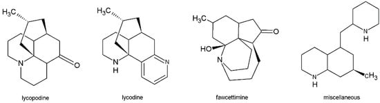 - Ayer, W.A. The Lycopodium alkaloids. Nat. Prod. Rep. 1991, 8, 455–463. [Google Scholar] [CrossRef]